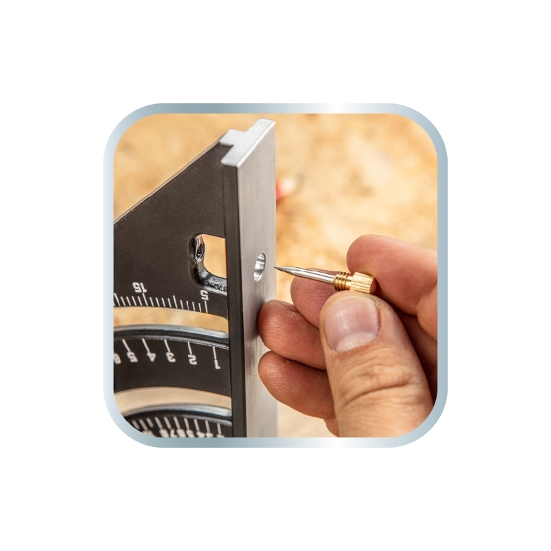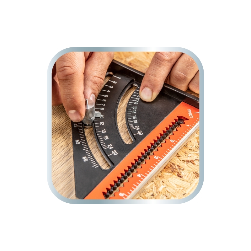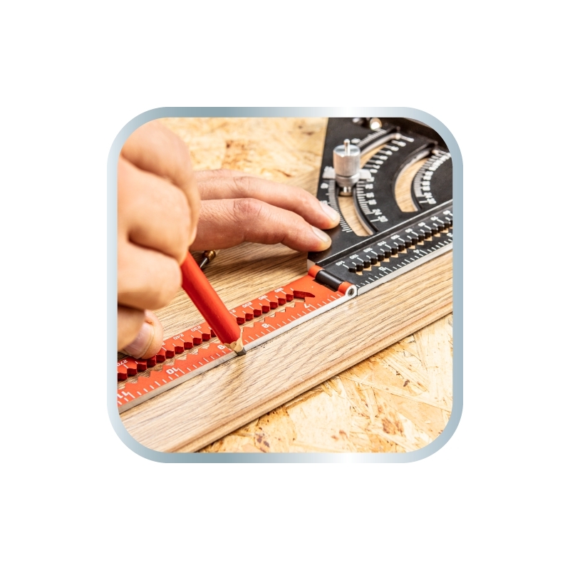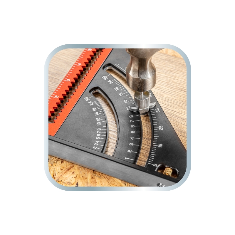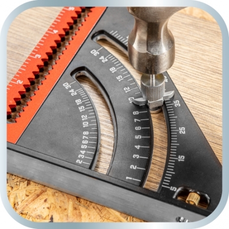 Kątownik z linijką, wykonany z aluminium, znacznik ze stali nierdzewnej, wysokość kątownika 185 mm, długość po rozłożeniu linijki 317 mm, składana linijka zamykana na magnes, zwiększa zakres pomiaru, powłoka elektroforetyczna kątownika zapewnia trwałe pokrycie farbą na powierzchni kątownika, anodowane rozkładane ramię