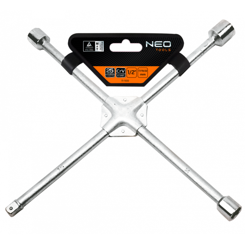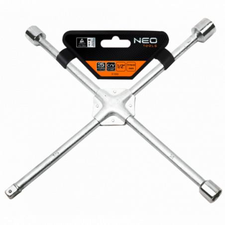 Klucz do kół, krzyżakowy wzmacniany, 17 x 19 x 22 x 1/2" mm, 380 mm, stal CrV, DIN889, certyfikat TÜV M+T