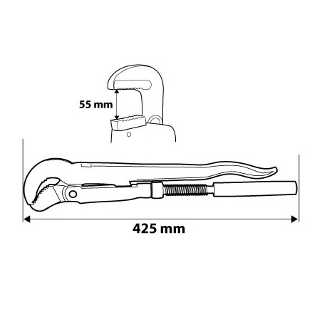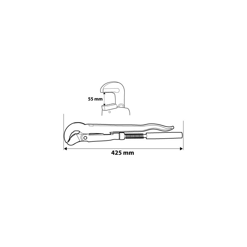 Klucz do rur typ 90°, 425 mm, 1.5°, odkuwany, szlifowane i polerowane szczęki, stal CrV, DIN5234, TÜV