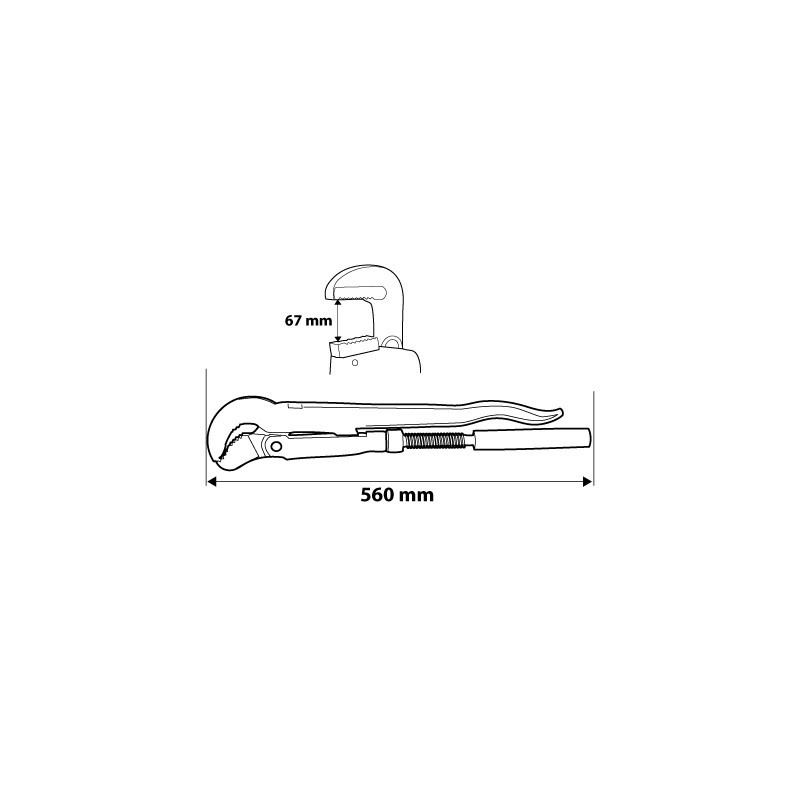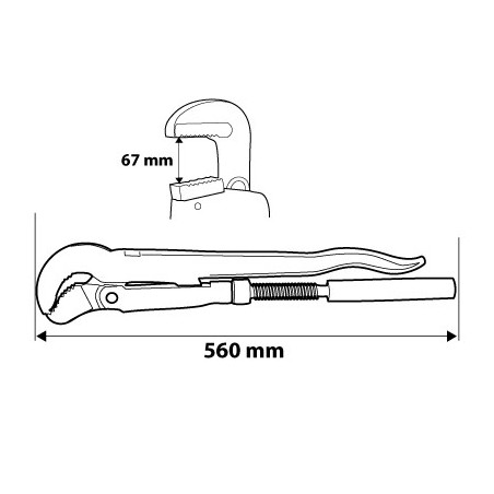 Klucz do rur typ 90°, 560 mm, 2.0°, odkuwany, szlifowane i polerowane szczęki, stal CrV, DIN5234, TÜV