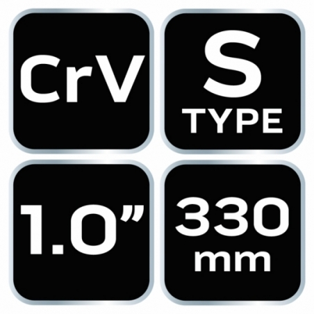 Klucz do rur typ "S", długość 330 mm, rozstaw szczęk 1.0", stal chromowo wanadowa, szczęki odkuwane i szlifowane, śruba nastawna, mechanizm ślimakowy, szczęki z zębami.