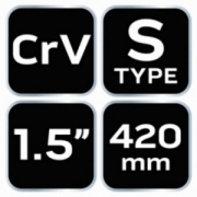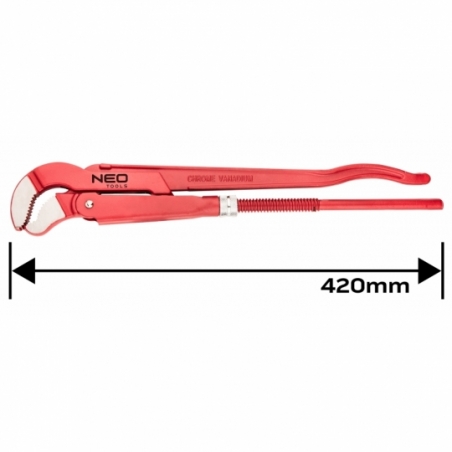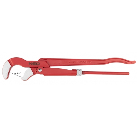 Klucz do rur typ "S", długość 420 mm, rozstaw szczęk 1.5", stal chromowo wanadowa, szczęki odkuwane i szlifowane, śruba nastawna, mechanizm ślimakowy, szczęki z zębami.
