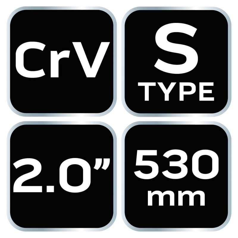 Klucz do rur typ "S", długość 530 mm, rozstaw szczęk 2.0", stal chromowo wanadowa, szczęki odkuwane i szlifowane, śruba nastawna, mechanizm ślimakowy, szczęki z zębami.