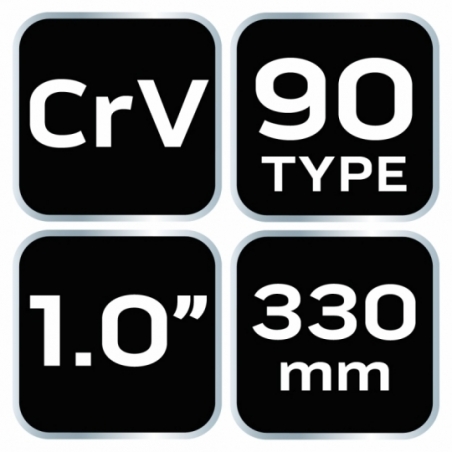 Klucz do rur typ "90°", długość 330 mm, rozstaw szczęk 1.0", stal chromowo wanadowa, szczęki odkuwane i szlifowane, śruba nastawna, mechanizm ślimakowy, szczęki z zębami
