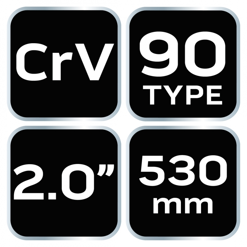 Klucz do rur typ "90°", długość 530 mm, rozstaw szczęk 2.0", stal chromowo wanadowa, szczęki odkuwane i szlifowane, śruba nastawna, mechanizm ślimakowy, szczęki z zębami