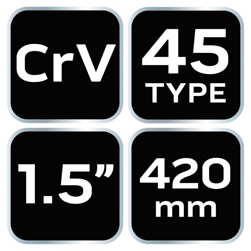 Klucz do rur typ "45°", długość 420 mm, rozstaw szczęk 1.5", stal chromowo wanadowa, szczęki odkuwane i szlifowane, śruba nastawna, mechanizm ślimakowy, szczęki z zębami