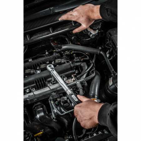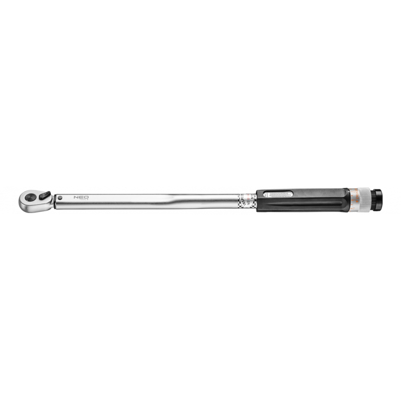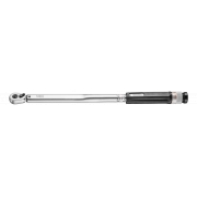 Klucz dynamometryczny 1/2" x 600 mm, 60-320 Nm, posiada mechanizm zapadkowy z 24 zębami, pierścień blokujący, okienko ze skalą, klucza nie należy przechowywać ze sprężyną ustawioną na maksymalne wartości, certyfikat kalibracji, stal CrV, etui z tworzywa, certyfikat TÜV M+T