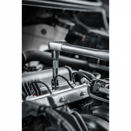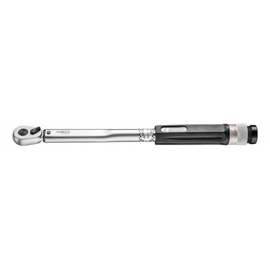 Klucz dynamometryczny 3/8" x 390 mm, 10-60 Nm, posiada mechanizm zapadkowy z 24 zębami, pierścień blokujący, okienko ze skalą, klucza nie należy przechowywać ze sprężyną ustawioną na maksymalne wartości, certyfikat kalibracji, stal CrV, etui z tworzywa, certyfikat TÜV M+T