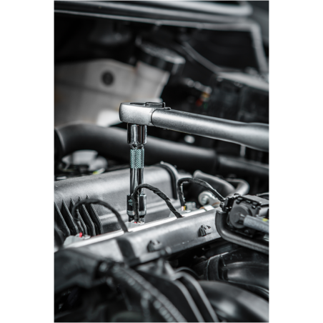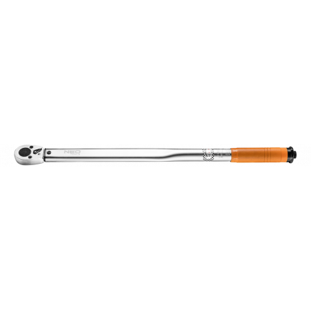 Klucz dynamometryczny 1/2" x 633 mm, 70 - 350 Nm, mechanizm zapadkowy 24 zęby, pierścień blokujący, okienko ze skalą, klucza nie należy przechowywać ze sprężyną ustawioną na maksymalne wartości, certyfikat kalibracji, stal CrV, etui z tworzywa, certyfikat TÜV M+T