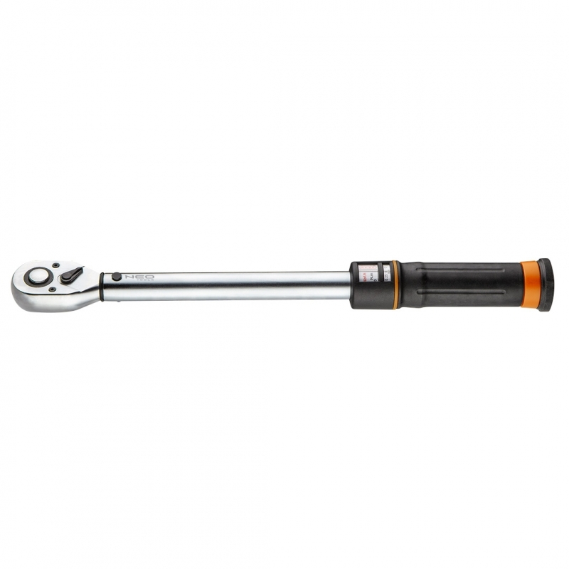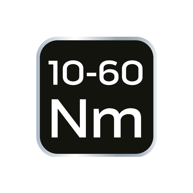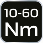 Klucz dynamometryczny 3/8" x 390 mm, 10-60 Nm, posiada mechanizm zapadkowy z 45 zębami, pierścień blokujący, okienko ze skalą, klucza nie należy przechowywać ze sprężyną ustawioną na maksymalne wartości, certyfikat kalibracji, stal CrV, etui z tworzywa, certyfikat TÜV M+T