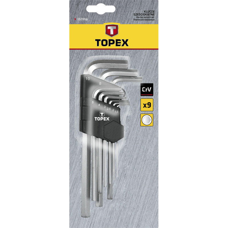 Klucze sześciokątne 1.5-10 mm, zestaw 9 szt., długie, stal CrV, rozmiary: 1.5, 2, 2.5, 3, 4, 5, 6, 8, 10 mm