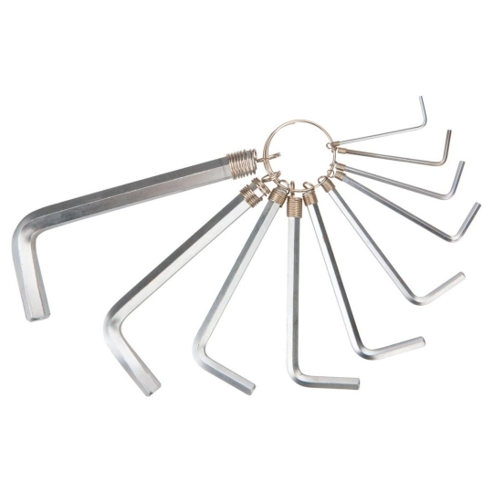 Klucze sześciokątne 1.5-10 mm, zestaw 10 szt., na kółku, stal CrV, rozmiary: 1.5, 2, 2.5, 3, 4, 5, 5.5, 6, 8, 10 mm
