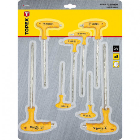 Klucze sześciokątne typu "T" 2-10 mm, 8 szt. 2, 2.5, 3, 4, 5, 6, 8, 10 mm, stal CrV