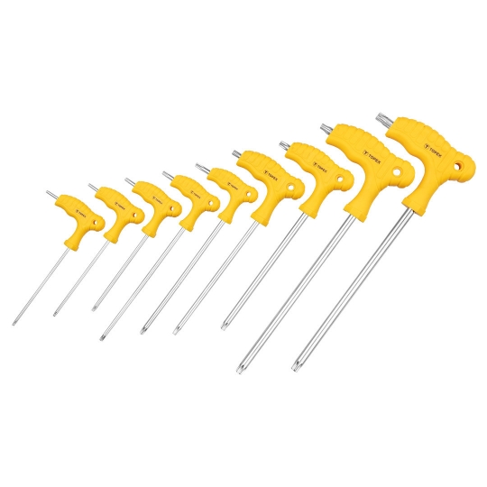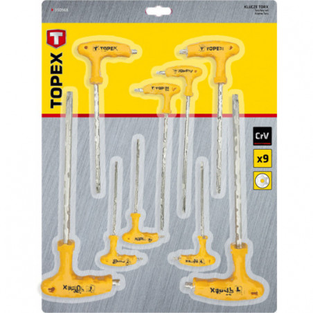 Klucze Torx typu "T" T10-T50 mm, 9 szt. T10, T15, T20, T25, T27, T30, T40, T45, T50, stal CrV