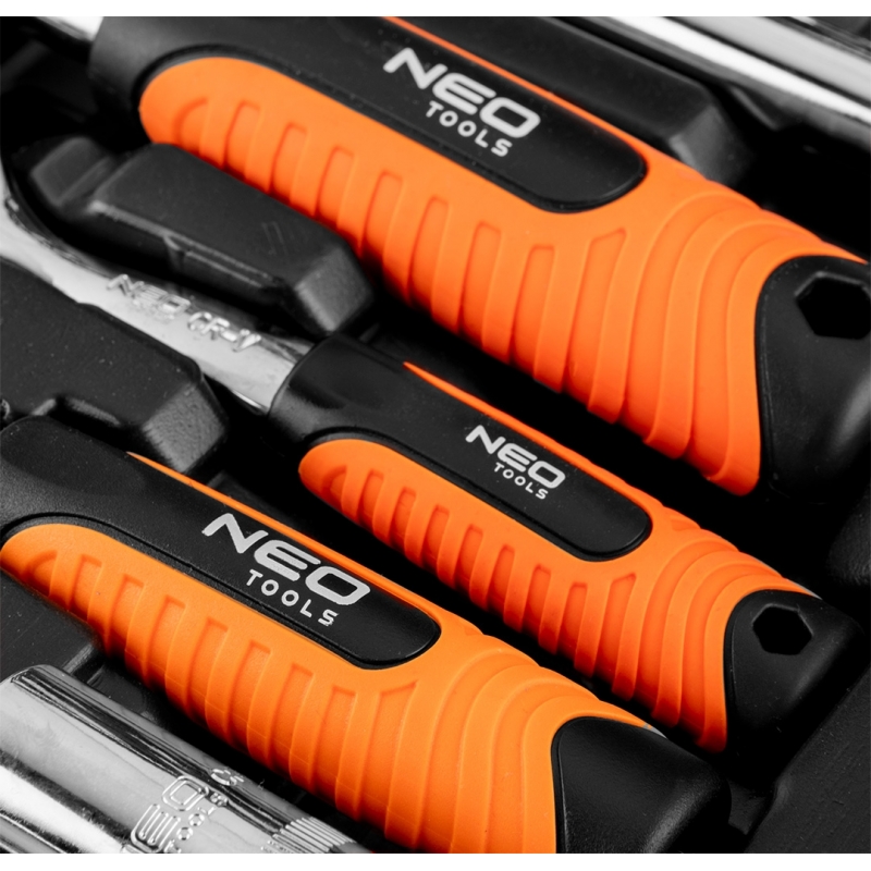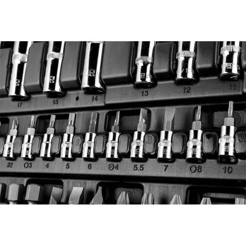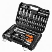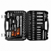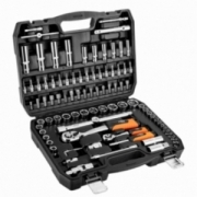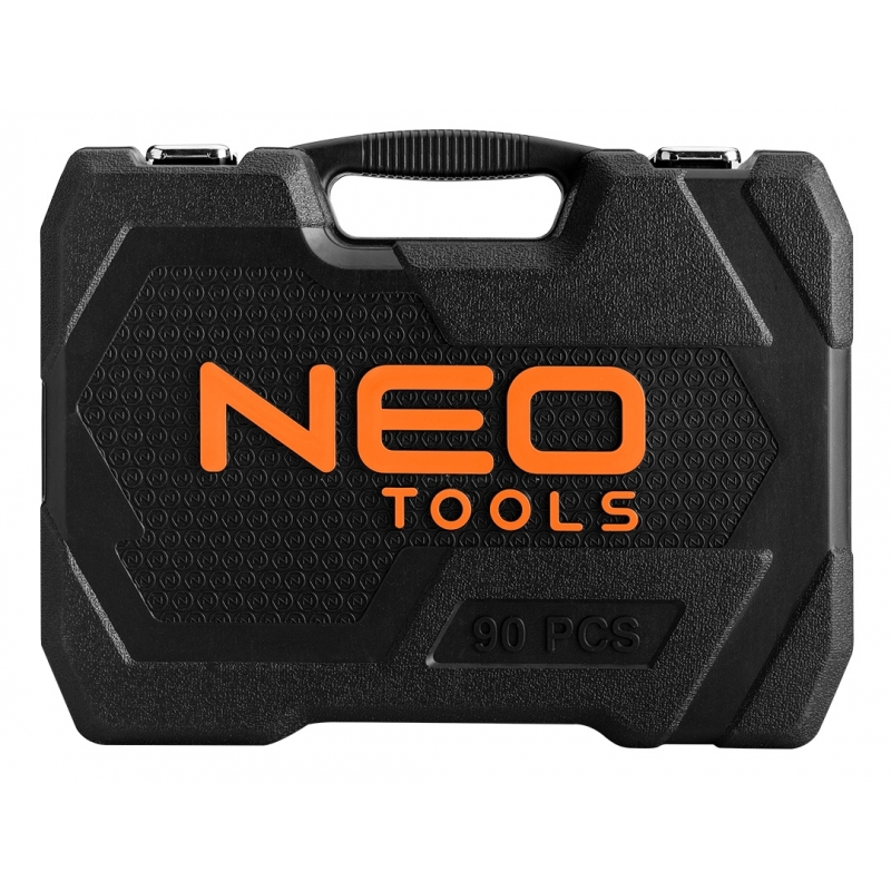 Klucze nasadowe 90 szt., 1/4", 1/2" stal CrV, nasadki sześciokątne 1/2" 16 szt.: 10, 11, 12, 13, 14, 15, 16, 17, 18, 19, 20, 21, 22, 23, 24, 27 mm, nasadki długie sześciokątne 1/2" 4 szt.: 14, 15, 17, 19 mm, grzechotka 1/2", 72 zęby, przedłużka 1/2" 2 szt.: 125 mm i 250 mm, nasadki do świec 1/2" 2 szt.: 16 mm i 21 mm, adapter do bitów 1/2" - 5/16", adapter 1/2", przegub uniwersalny 1/2", nasadki sześciokątne 1/4" 13 szt.: 4, 4.5, 5, 5.5, 6, 7, 8, 9, 10, 11, 12, 13, 14 mm, nasadki długie sześciokątne 1/4" 6 szt.: 8, 9, 10, 11, 12, 13 mm, grzechotka 1/4" 72 zęby, pokrętło 1/4", przegub uniwersalny 1/4", przedłużki 1/4" 2 szt.: 50mm i 100mm, wkrętak do bitów 1/4", przedłużka elastyczna 1/4" 150 mm, adapter 30 mm, bity na nasadkach 1/4" 17 szt.: TX8, TX10, TX15, TX20, TX25, TX30, H3, H4, H5, H6 mm, PH1, PH2, PZ1, PZ2, FD4, FD5.5, FD7, bity 5/16" 15 szt.: TX40, TX45, TX50, TX55 H8, H10, H12, H14, PH3, PH4, PZ3, PZ4, FD8, FD10, FD12 mm, klucze sześciokątne 3 szt.: 1.5, 2, 2.5 mm, 25 lat gwarancji.