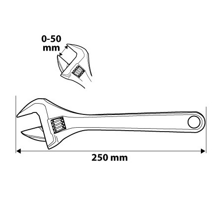 Klucz nastawny 250 mm, zakres 0-50 mm, stal CrV, DIN 3117, gumowany uchwyt, certyfikat TÜV M+T, 25 lat gwarancji