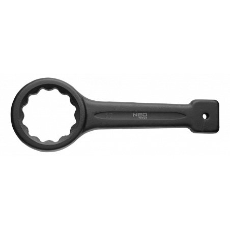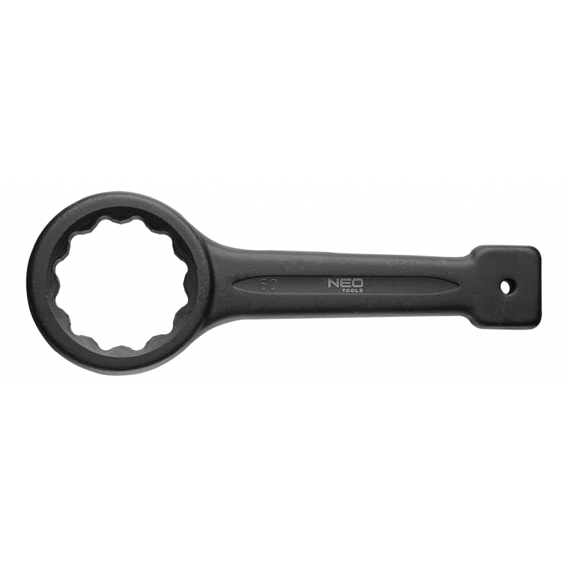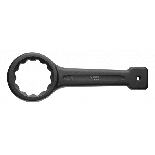 Klucz oczkowy do pobijania 60 x 280 mm, CrMo, odkuwany, wzmocniona końcówka do pobijania młotem, do montażu i demontażu ciężkich śrub i nakrętek, DIN7444, certyfikat TÜV M+T, 25 lat gwarancji