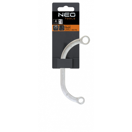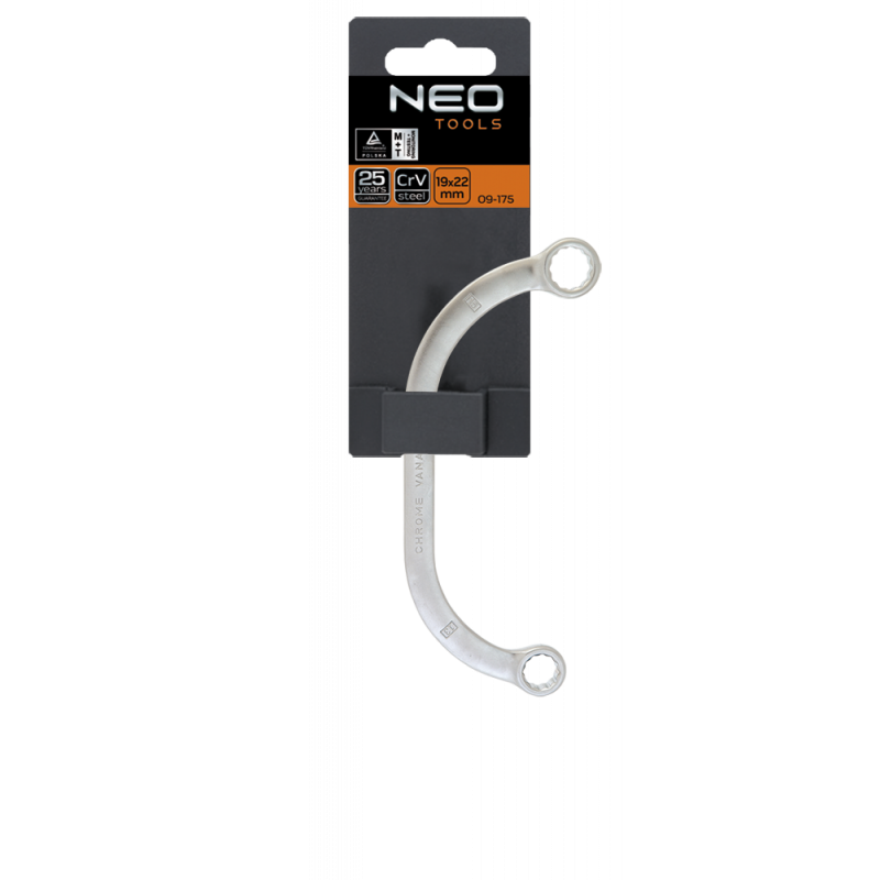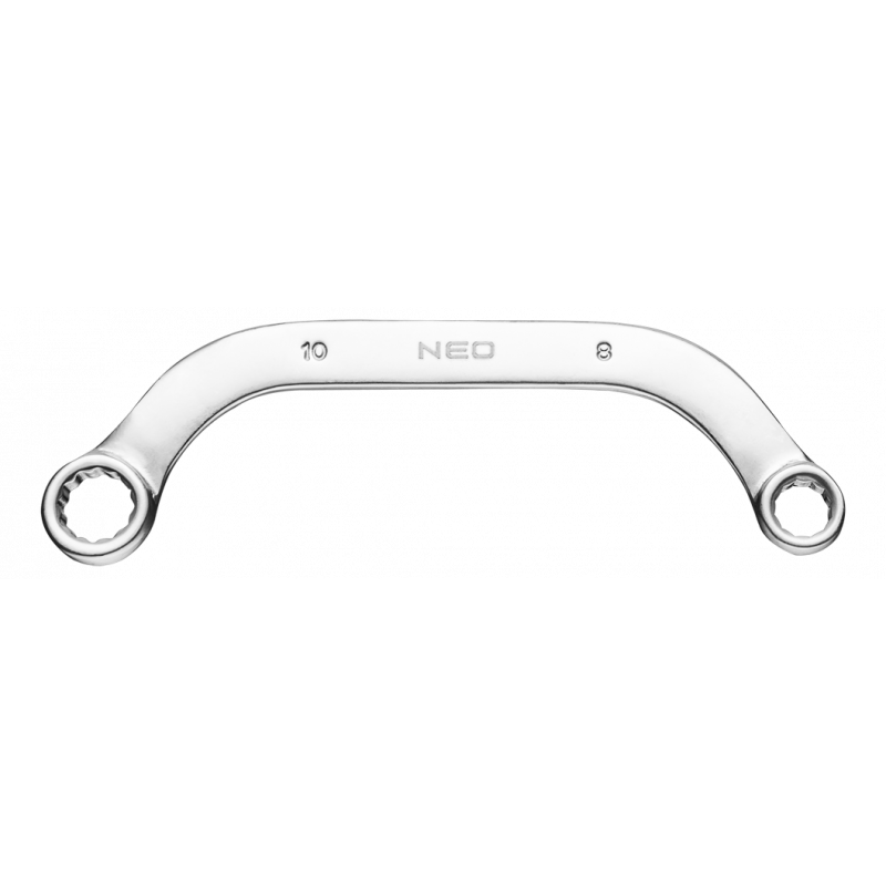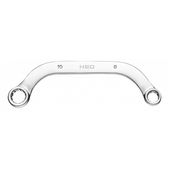 Klucz oczkowy wygięty 8 x 10 mm, odkuwany, wzmocniony, chwyt łukowy, odporny na wygięcia, stal CrV, certyfikat TÜV M+T, 25 lat gwarancji