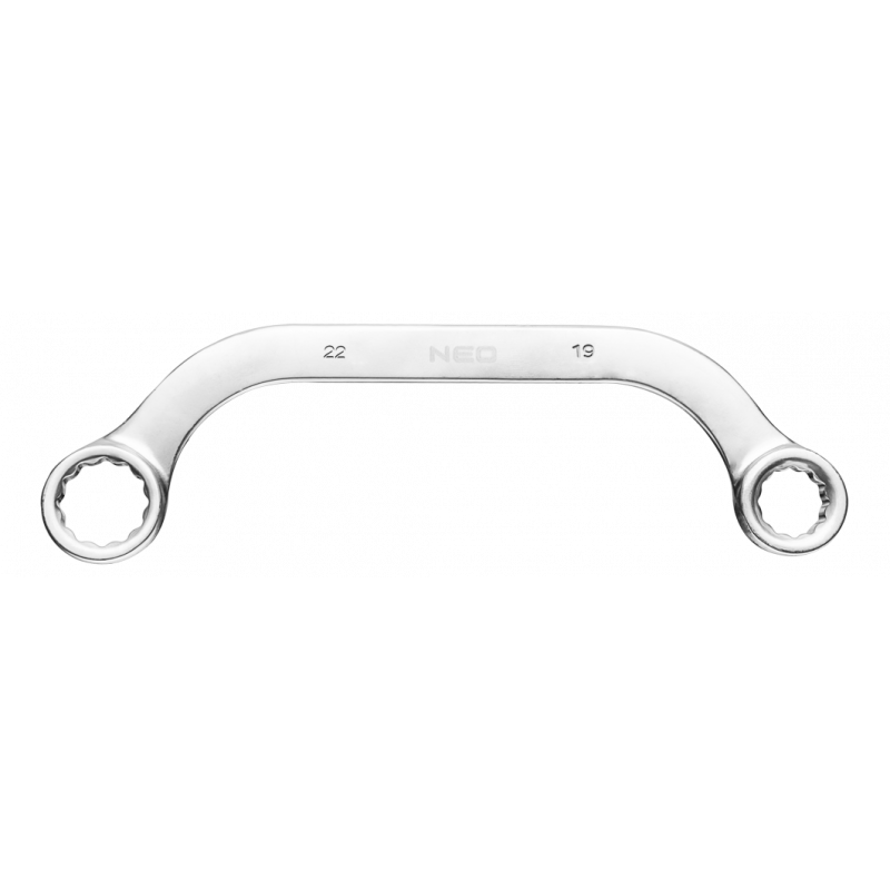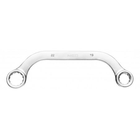 Klucz oczkowy wygięty 19 x 22 mm, odkuwany, wzmocniony, chwyt łukowy, odporny na wygięcia, stal CrV, certyfikat TÜV M+T, 25 lat gwarancji