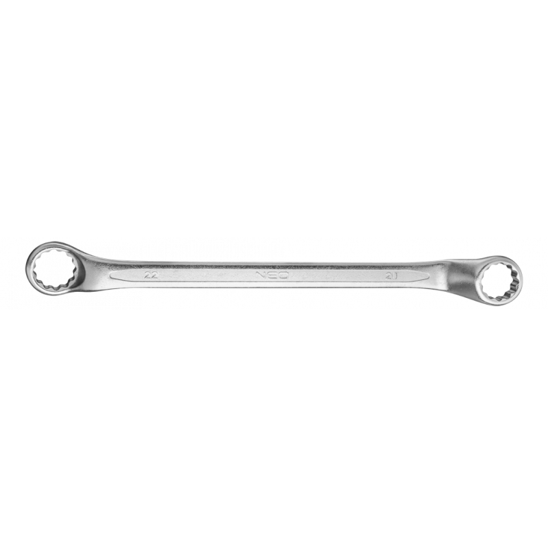 Klucz oczkowy odgięty 20 x 22 mm, stal CrV, DIN838, przetłoczenie, wykończenie satynowe, certyfikat TÜV M+T, 25 lat gwarancji