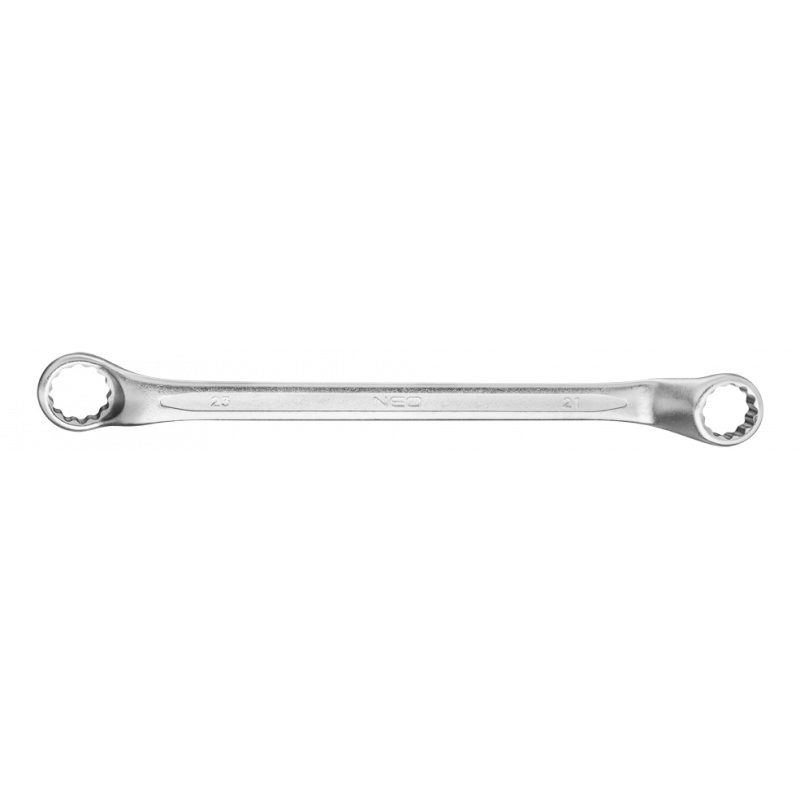 Klucz oczkowy odgięty 21 x 23 mm, stal CrV, DIN838, przetłoczenie, wykończenie satynowe, certyfikat TÜV M+T, 25 lat gwarancji