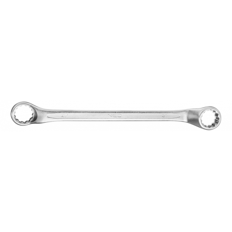 Klucz oczkowy odgięty 24 x 27 mm, stal CrV, DIN838, przetłoczenie, wykończenie satynowe, certyfikat TÜV M+T, 25 lat gwarancji
