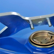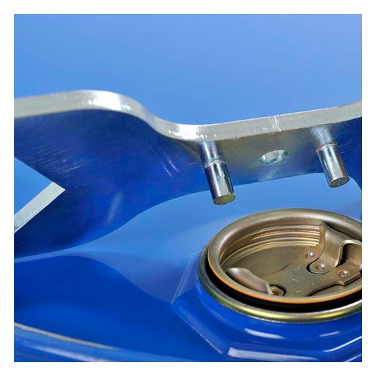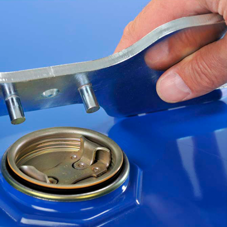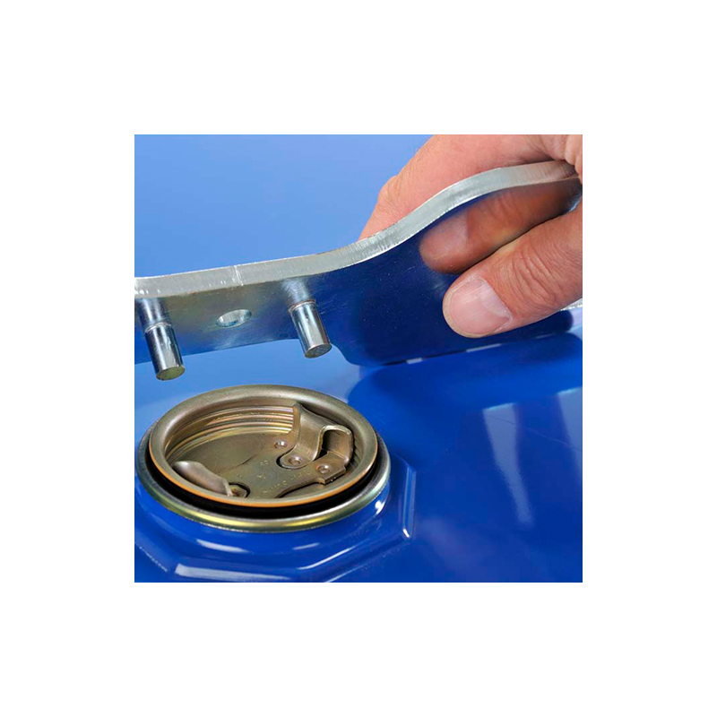 Otwieracz do beczek w połączeniu z żurawiem beczkowym i pokrywą beczki. Specjalnie zaprojektowany otwieracz do szuflad. Połączona jednostka, która pasuje do wszystkich 2-calowych żurawi beczkowych i wszystkich standardowych 2-calowych osłon beczkowych.
