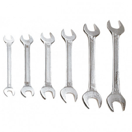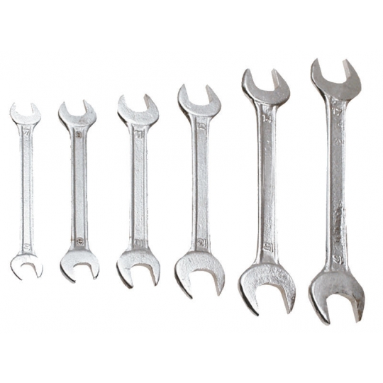 Klucze płaskie dwustronne 6-32 mm, zestaw 12 szt., rozmiary: 6 x 7, 8 x 9, 10 x 11, 12 x 13, 14 x 15, 16 x 17, 18 x 19, 20 x 22, 21 x 23, 24 x 27, 25 x 28, 30 x 32 mm