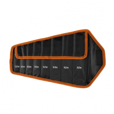 Klucze płaskie dwustronne, super cienkie, 5.5 x 27 mm, zestaw 8 szt., wykonane z stali węglowej hartowanej, odporne na rdzę, grubości 3 mm, rozmiary: 5,5x7mm, 8x9mm, 10x12mm, 11x13mm, 14x17mm, 16x18mm, 19x21mm, 24x27mm