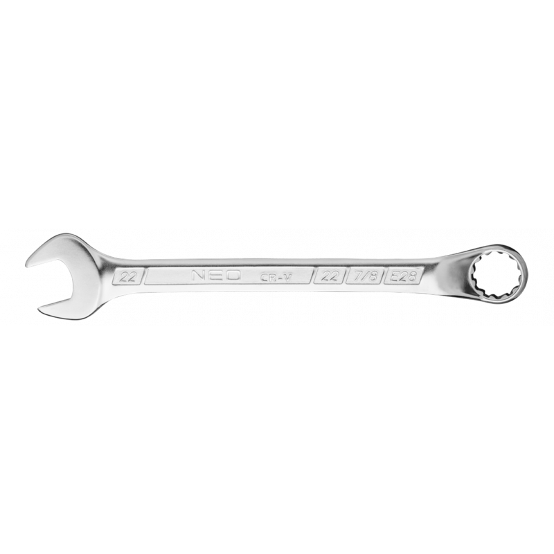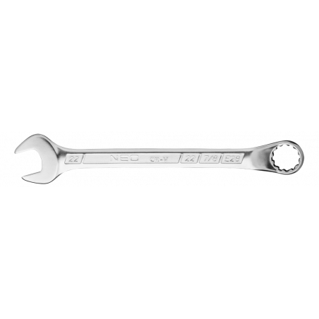 Klucz płasko-oczkowy odgięty 22 x 275 mm, dwunastokątny kształt oczka, oczko odgięte pod kątem 45°, DIN3113, stal CrV, certyfikat TÜV M+T, 25 lat gwarancji