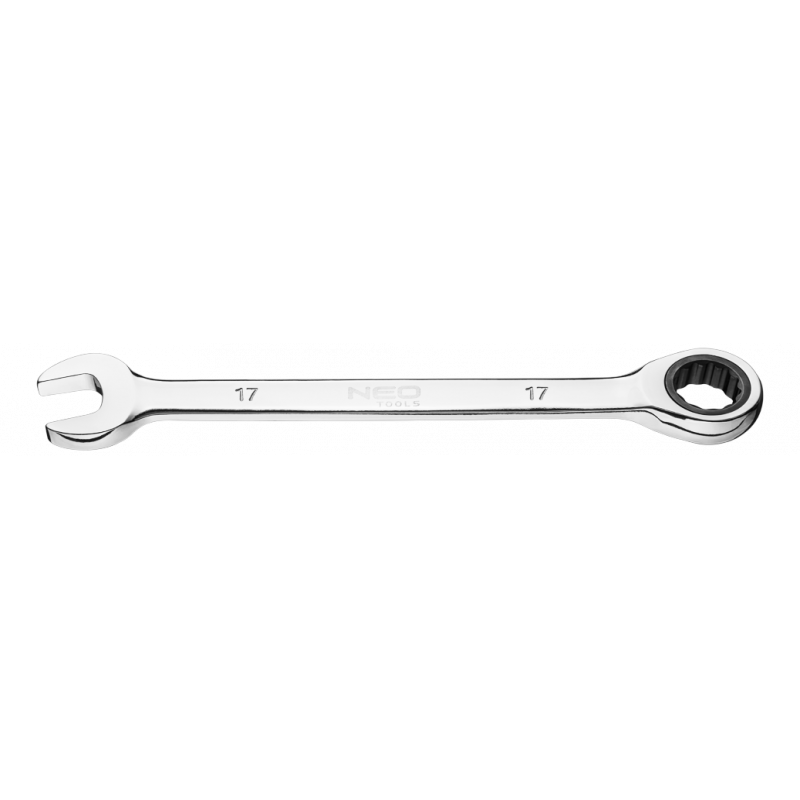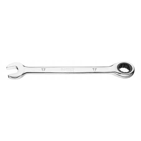 Klucz płasko-oczkowy z grzechotką 17 mm, stal CrV, 72-zęby grzechotki, certyfikat TÜV M+T