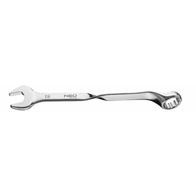 Klucz płasko-oczkowy skręcony 90°, 19mm, stal CrV