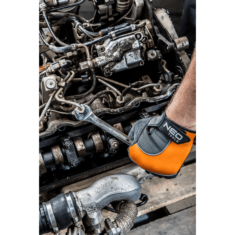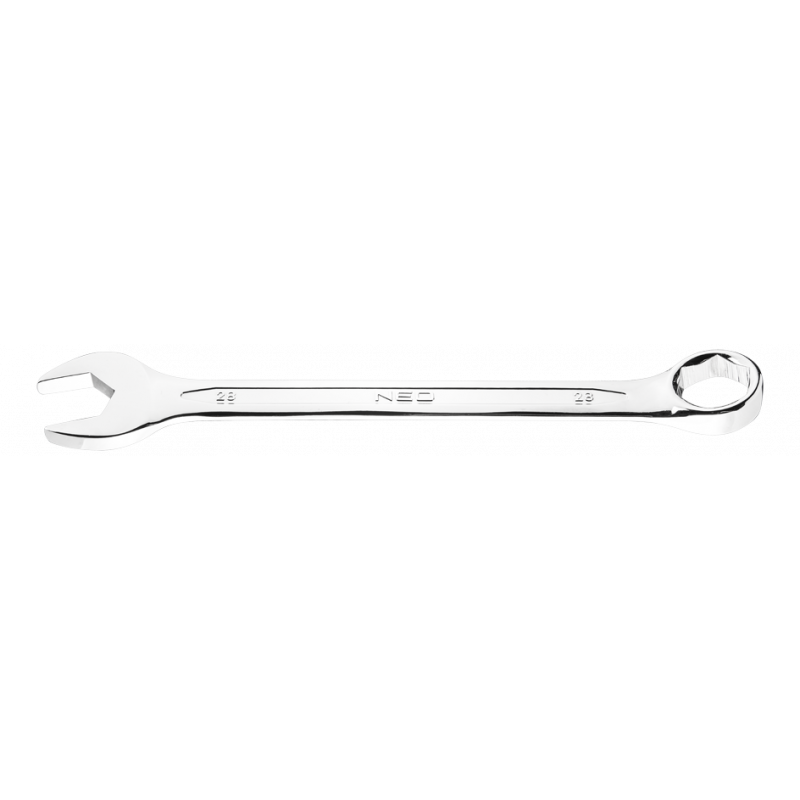 Klucz płasko-oczkowy 28 mm, oczko sześciokątne, profilowana część otwarta klucza, stal CrV, zgodny z normą DIN 3113, 25 lat gwarancji