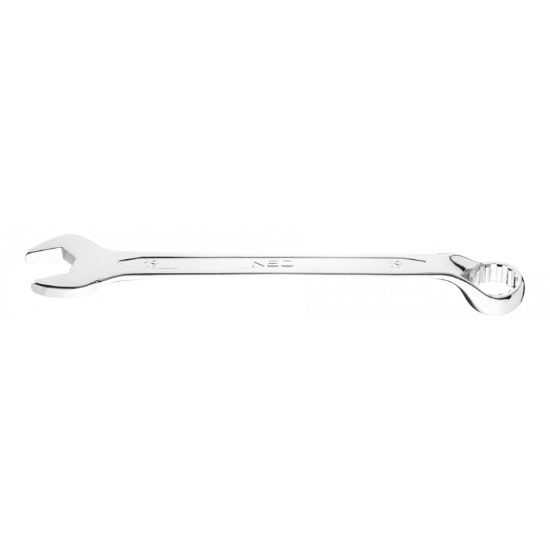 Klucz płasko-oczkowy 19 mm, oczko SPLINE, profilowana część otwarta klucza, stal CrV, zgodny z normą DIN 3113, 25 lat gwarancji