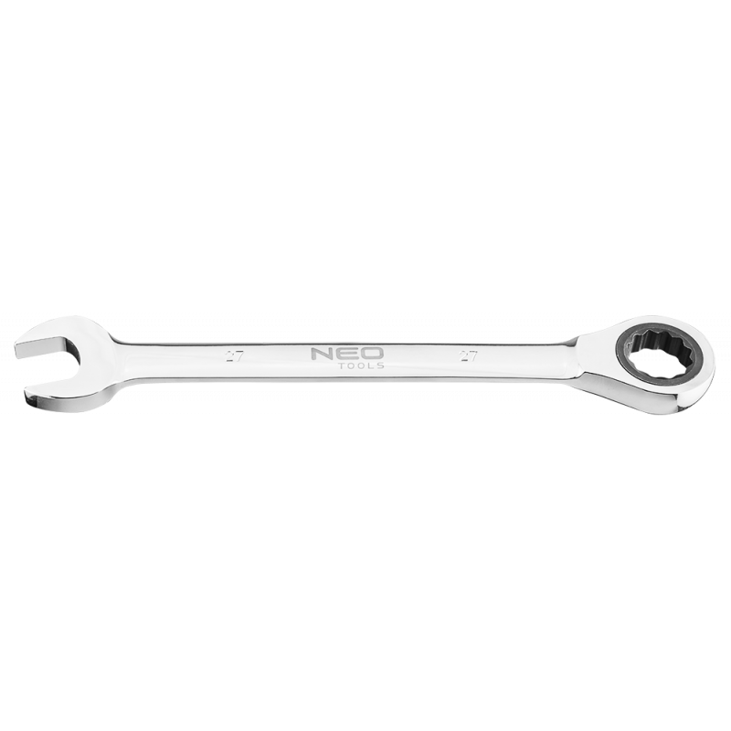 Klucz płasko-oczkowy z grzechotką 27 mm, stal CrV, 72-zęby grzechotki, certyfikat TÜV M+T