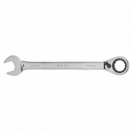 Klucz płasko-oczkowy z grzechotką 19 mm, stal CrV, 72-zęby grzechotki