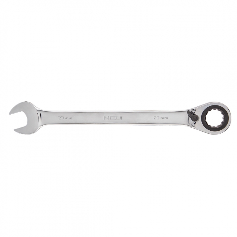 Klucz płasko-oczkowy z grzechotką 23 mm, stal CrV, 72-zęby grzechotki