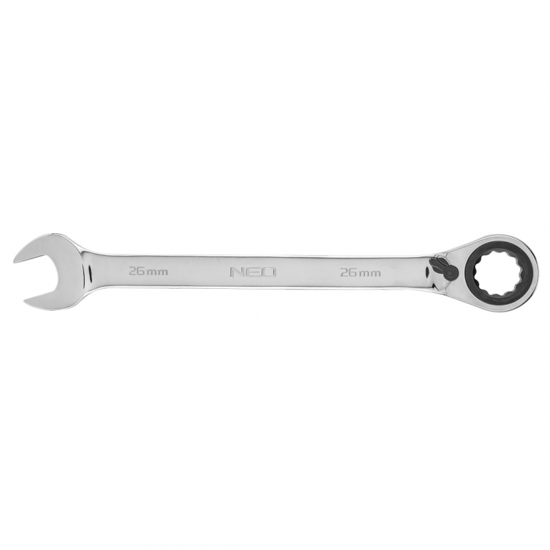 Klucz płasko-oczkowy z grzechotką 26 mm, stal CrV, 72-zęby grzechotki