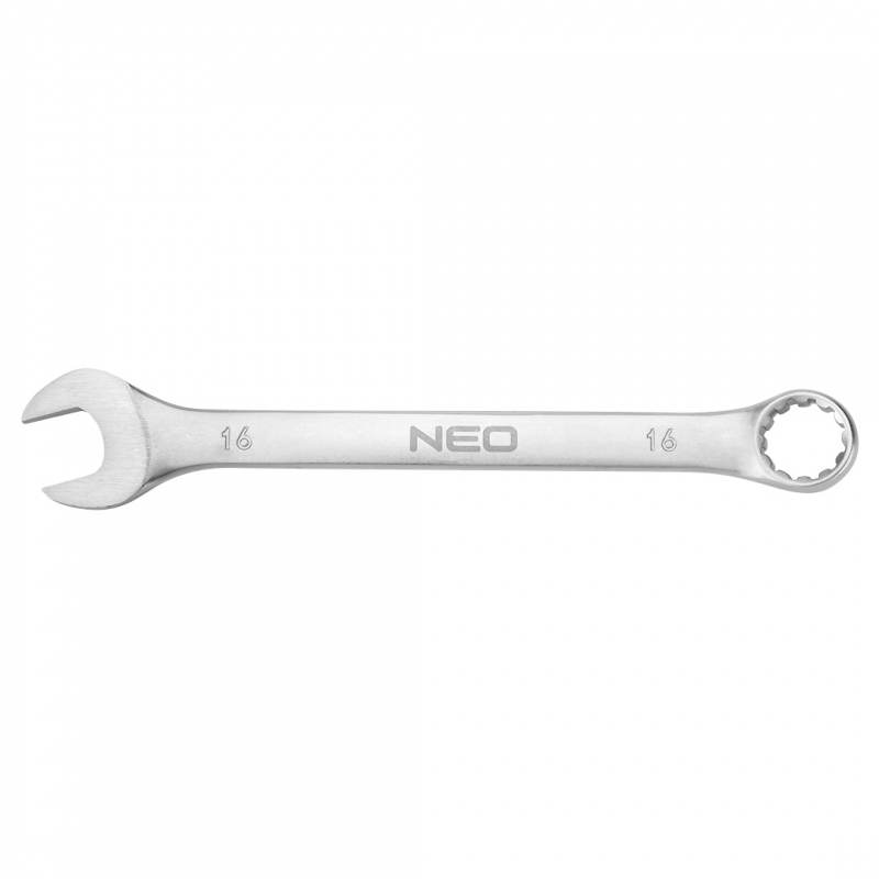 Klucz płasko-oczkowy 16 x 200 mm, stal CrV, DIN 3113, przetłoczenie, satynowane, główka polerowana pod kątem 15°, certyfikat TÜV M+T, 25-letnia gwarancja
