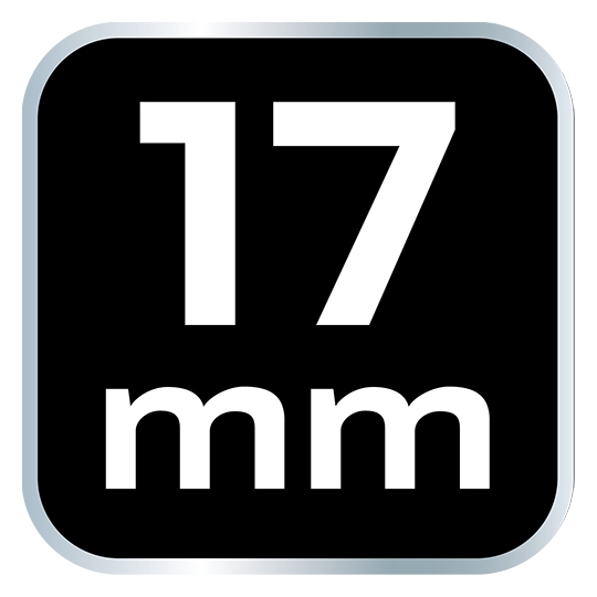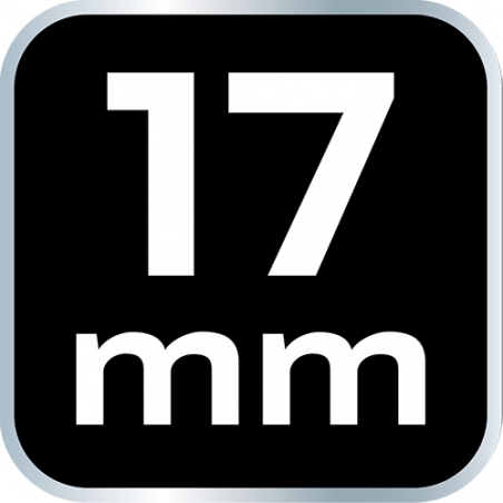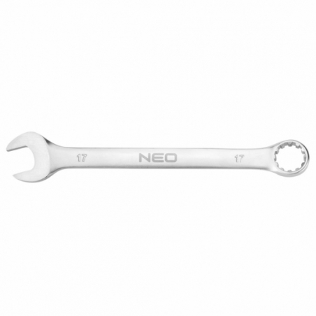 Klucz płasko-oczkowy 17 x 210 mm, stal CrV, DIN 3113, przetłoczenie, satynowane, główka polerowana pod kątem 15°, certyfikat TÜV M+T, 25-letnia gwarancja