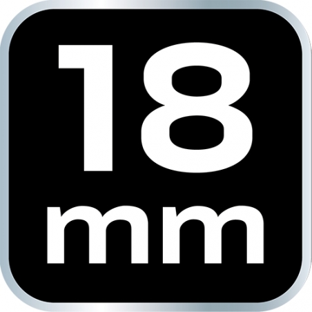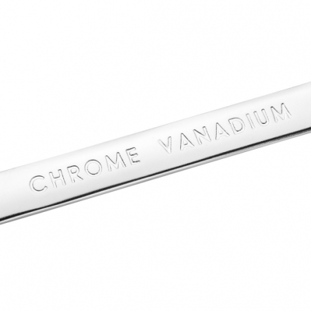 Klucz płasko-oczkowy 18 x 220 mm, stal CrV, DIN 3113, przetłoczenie, satynowane, główka polerowana pod kątem 15°, certyfikat TÜV M+T, 25-letnia gwarancja