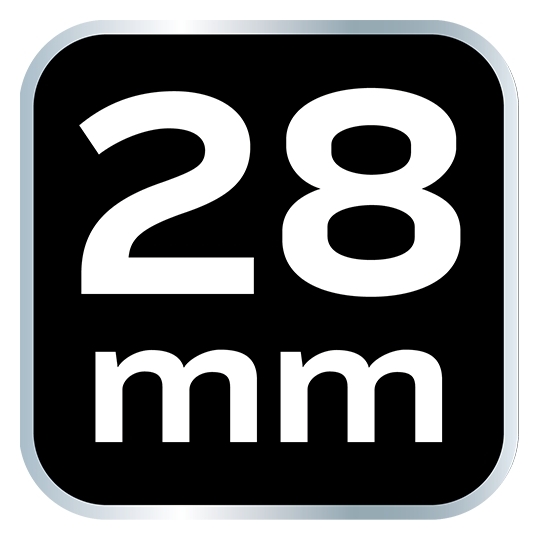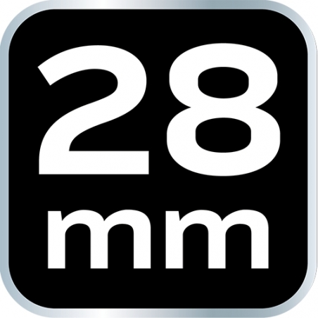 Klucz płasko-oczkowy 28 x 310 mm, stal CrV, DIN 3113, przetłoczenie, satynowane, główka polerowana pod kątem 15°, certyfikat TÜV M+T, 25-letnia gwarancja