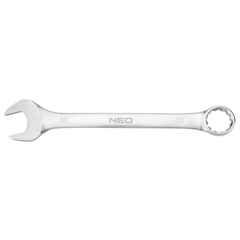 Klucz płasko-oczkowy 30 x 340 mm, stal CrV, DIN 3113, przetłoczenie, satynowane, główka polerowana pod kątem 15°, certyfikat TÜV M+T, 25-letnia gwarancja