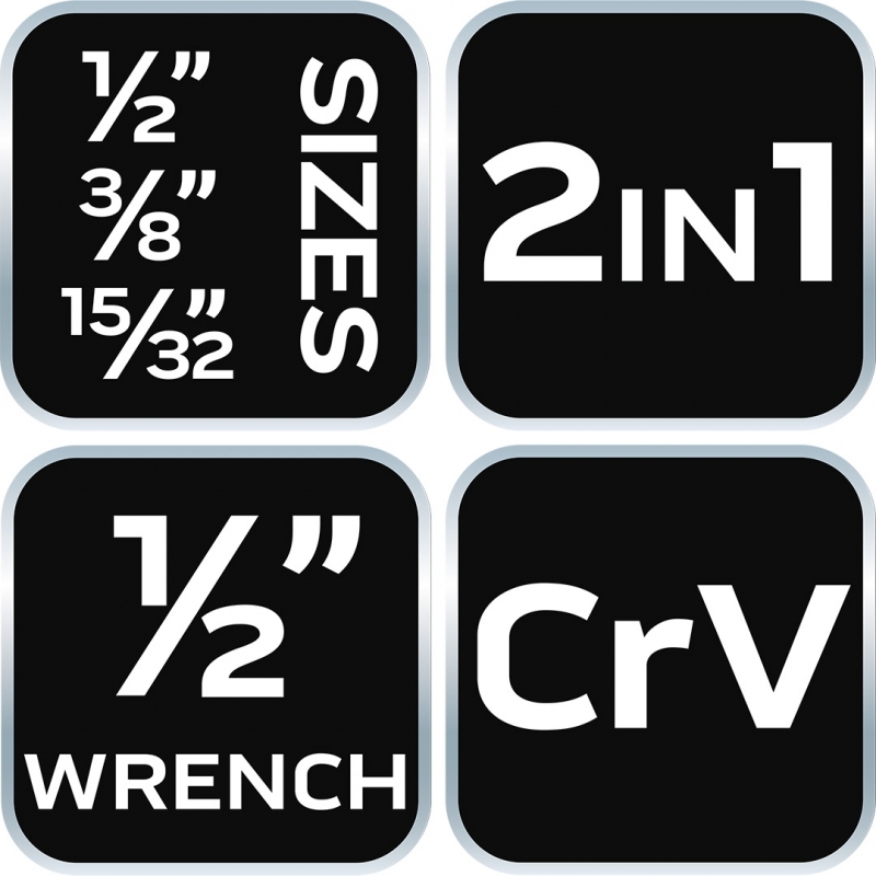 Końcówka do śrubunków 2 w 1, stal CRV, do kluczy w rozmiarze 1/2 cala żeńskich i męskich, rozmiary 1/2", 3/8", 15/32", adapter do kluczy żeńskich