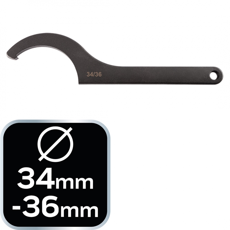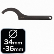 Klucz hakowy, rozmiar 34-36mm, służy do regulacji nakrętek łożysk główki ramy, regulacji tylnego zawieszenia, regulacji łańcucha w motocyklach wyposażonych w wahacz jednostronny,
