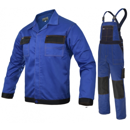 Komplet ubrań składający się z bluzy i spodni ogrodniczek, wykonanych z tkaniny poliestrowo - bawełnianej (65% poliestru i 35% bawełny ) o gramaturze 290g/m2+/-3%.