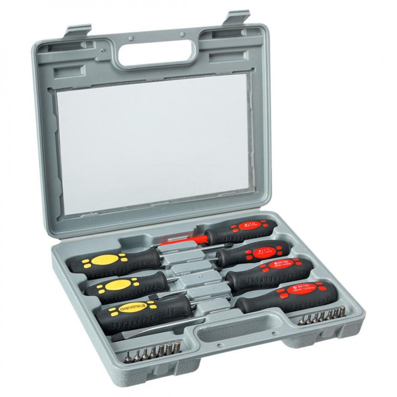 Wkrętaki i końcówki wkrętakowe, zestaw 21 szt., CrV, magnetyczne końcówki, HX 2, 2.5, 3, 4, 5, 5.5, 6 mm, TZ 10, 15, 20, 25, 27, 30, 40, PH1 x 75 mm, PH2 x 100 mm, 3 mm x 75 mm, 4 mm x 75 mm, 6 mm x 100 mm, 8 mm x 150 mm