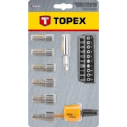 Końcówki wkrętakowe i nasadki z uchwytem, zestaw 18 szt., uchwyt 1/4", 60 mm, 6 szt. nasadek wkrętakowych, rozmiary: 6, 7, 8, 9, 10, 11 mm, 10 szt. końcówek wkrętakowych 25 mm, rozmiary: płaskie 4, 7 mm, krzyżowe PH1, PH2, PZ1, PZ2, PZ3, Torx T10, T15, T20, magnetyzer, demagnetyzer, etui z tworzywa