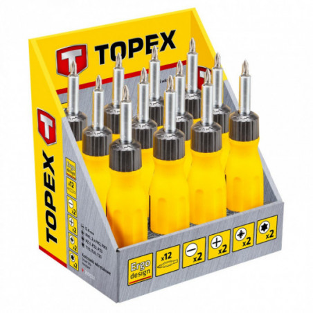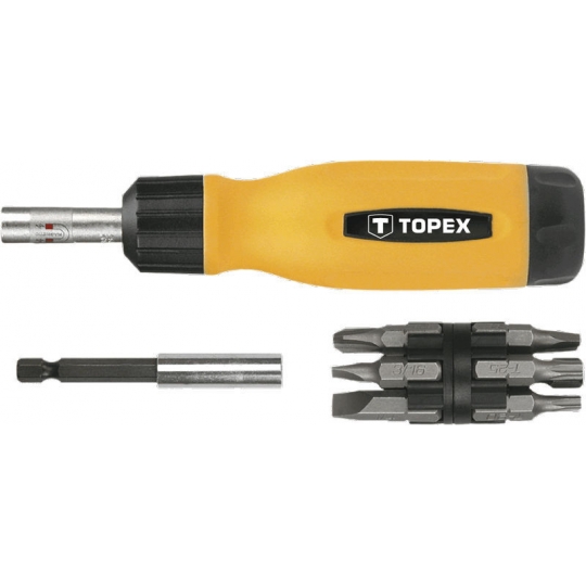 Końcówki wkrętakowe z uchwytem, zestaw 14 szt., 1/4", uchwyt wkrętakowy magnetyczny, uchwyt do końcówek wkrętakowych 60 mm, 12 szt. końcówek wkrętakowych 25 mm, rozmiary: płaskie 5 mm, 6 mm, krzyżowe PH1, 2 x PH2, PH3, PZ1, PZ2, PZ3, Torx T15, T20, T25, stal CrV