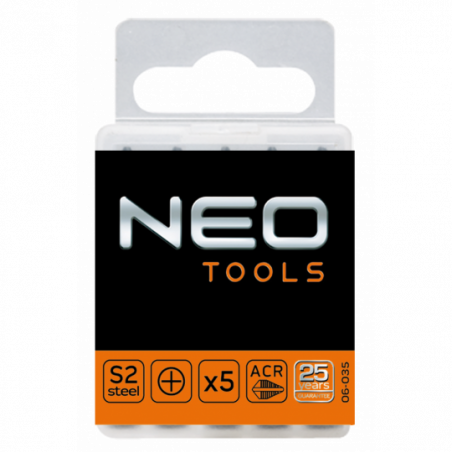 Końcówki wkrętakowe PH2 x 25 mm, ACR, 5 szt., 1/4", twardość 60 HRc, stal S2